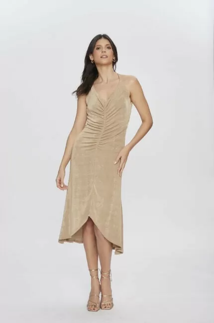 Vestido Feminino Slim Midi De Alcinha com Franzido VE.162.0013